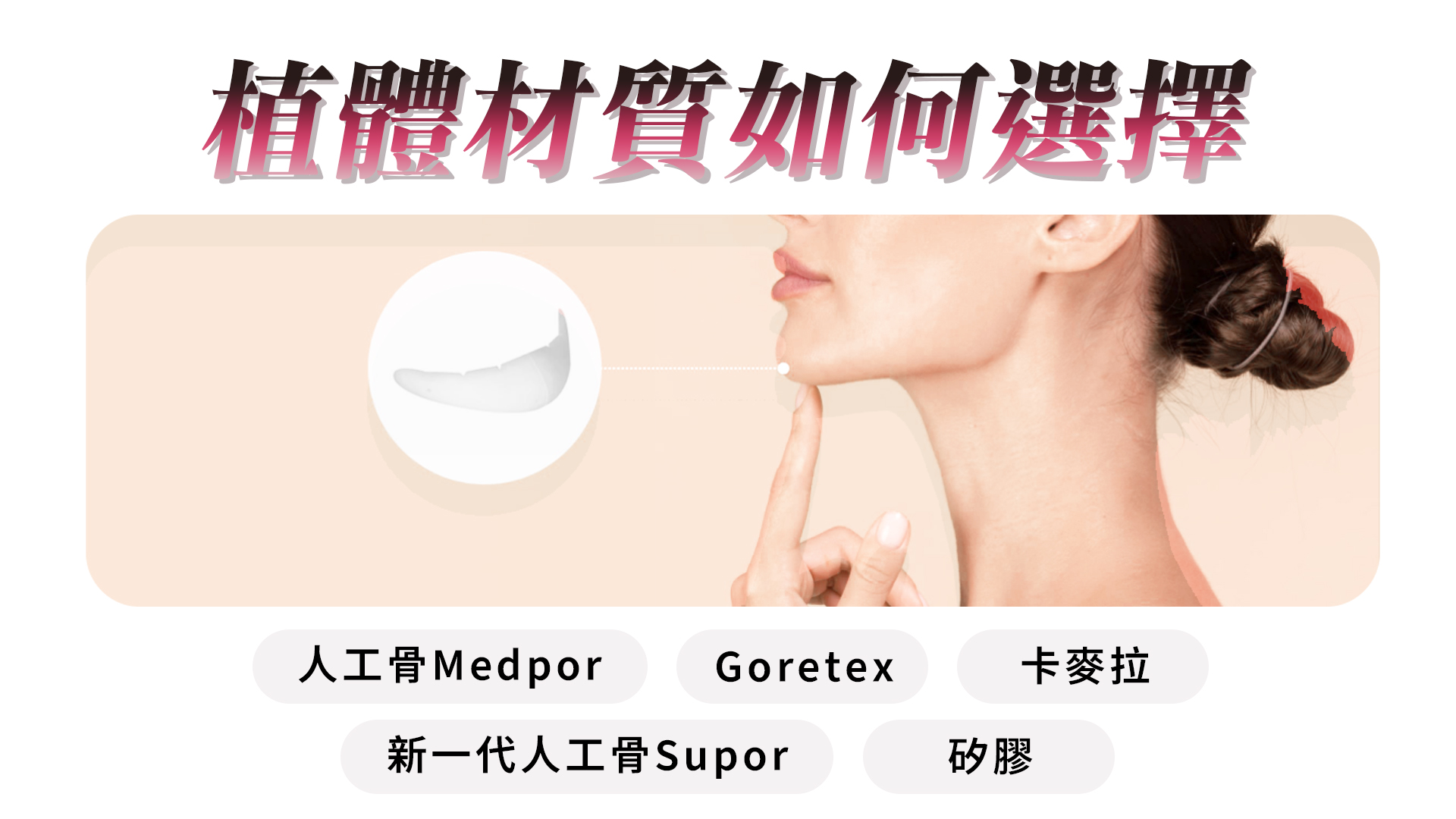 下巴人工骨材料Medpor是一種高密度多孔性聚乙烯,其優點包括良好的生物相容性,不會導致下巴骨頭吸收,也不會出現軟組織縮減或異位的問題;缺點是價格較高,手術難度較大。