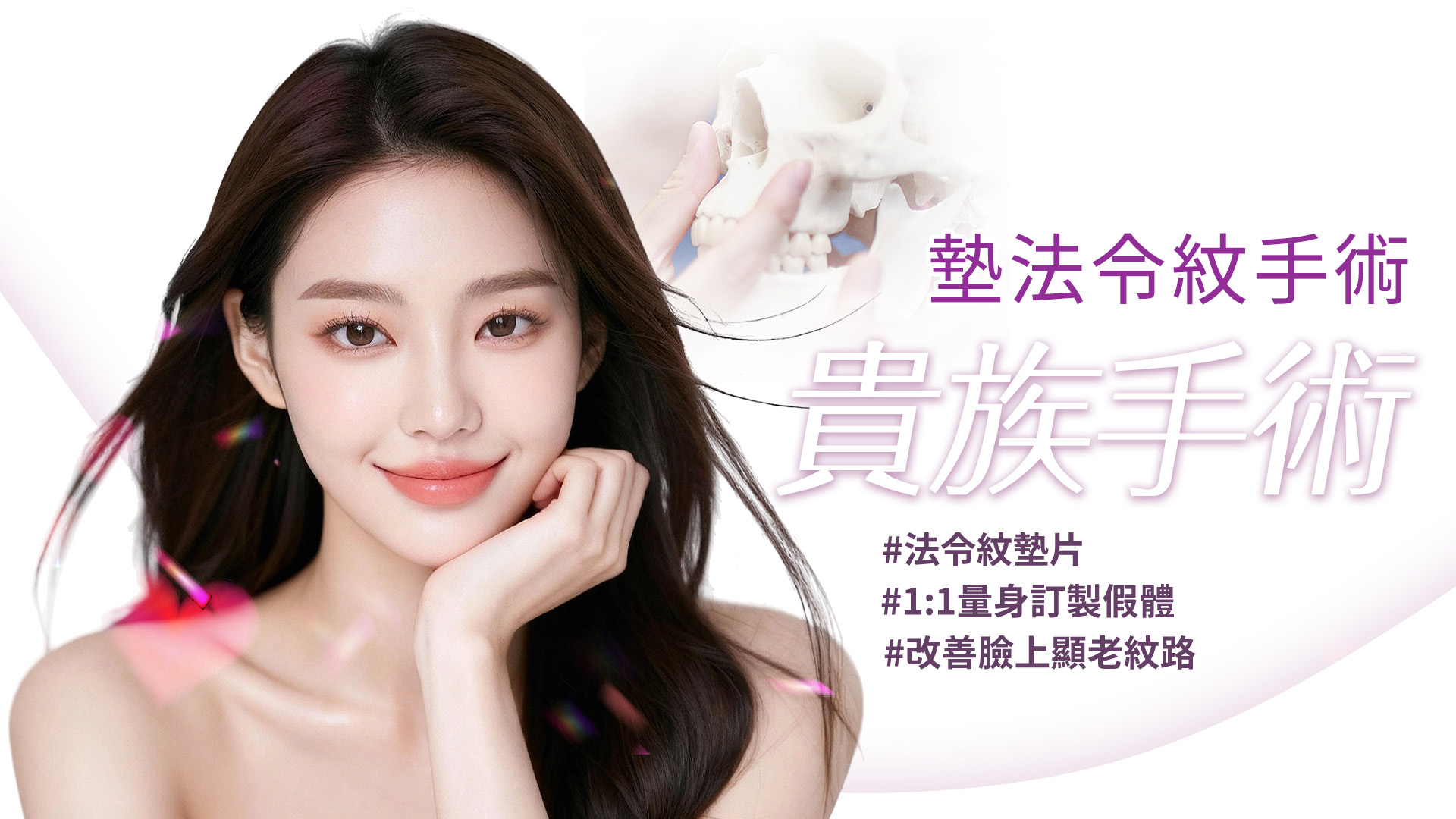 法令紋墊片手術,又稱法令雙旋固定術或貴族手術,通常是植入矽膠、Gortex或自體肋骨等墊片,將鼻唇溝墊高來支撐凹陷區域並增強立體感的一種方式。這項手術特別適合法令紋較深或希望明顯改善法令紋的患者。藉由植入假體,可有效填補凹陷部位,使臉部看起來更飽滿豐盈,並且能提供持久的改善效果。